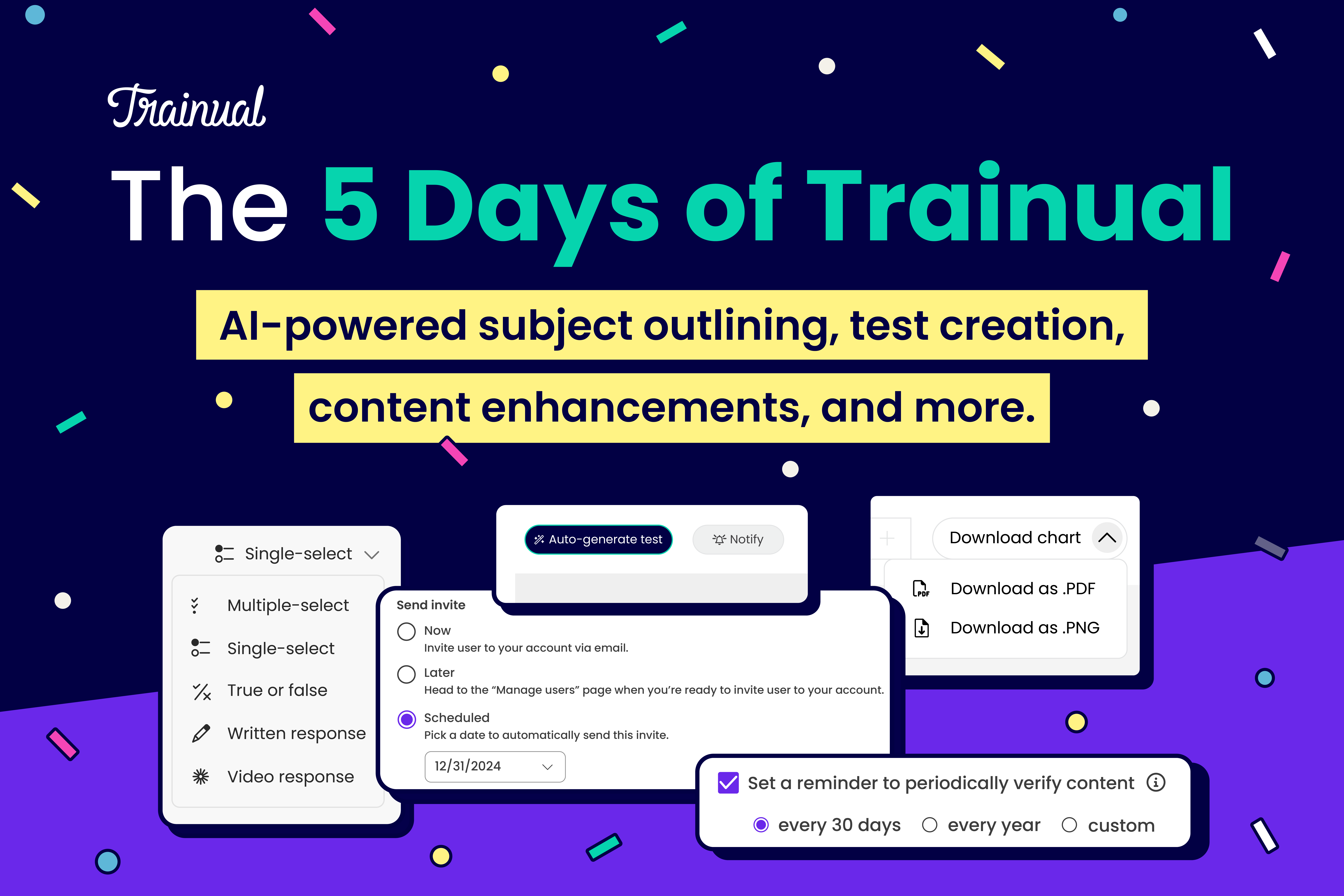 The 5 Days of Trainual: Automate Content Enhancements, Test Creation, Subject Outlining, and More in 2024.