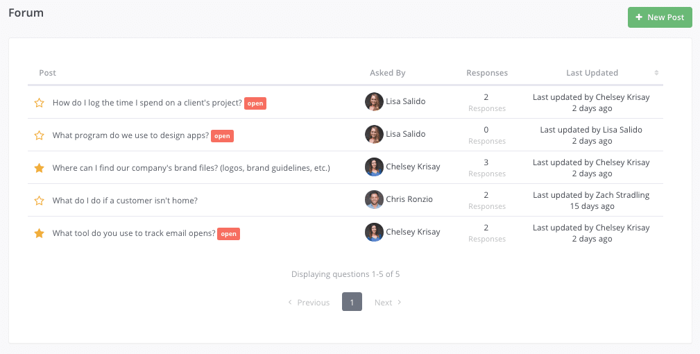 In Trainual 1.0, it either said “pending” or “resolved” next to a question in the Q+A. Now, questions and topics in the forum will either remain "open" (accepting replies and discussions), or they will be "closed" if a question has been sufficiently answered or if there hasn't been any activity on a forum topic for an extended period of time.