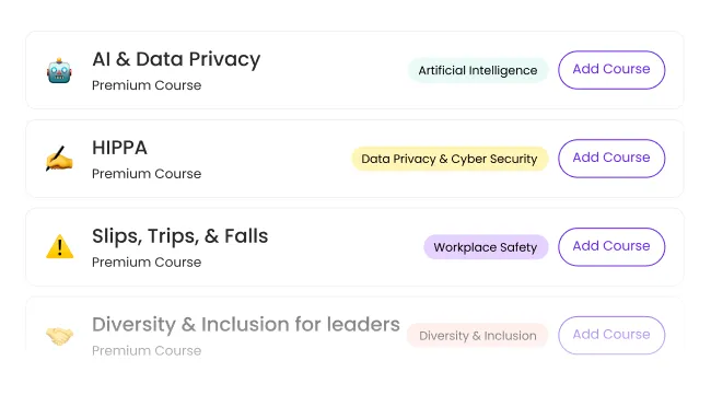Access pre-built training on essential business topics — ready to launch, customize, and assign to your team.
